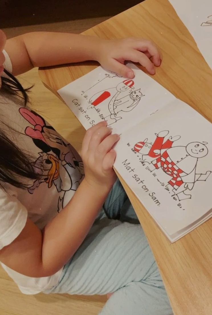 M3, surrounded by books and language from birth. We’re introducing her to letter sounds and phonological awareness effortlessly. She’s stringing sentences, using them in correct context, loves to pretend read on her own and we’re seeing a rapid increase in her vocabulary. She’s the main tester the pre-readers membership and she’s growing together with this membership.